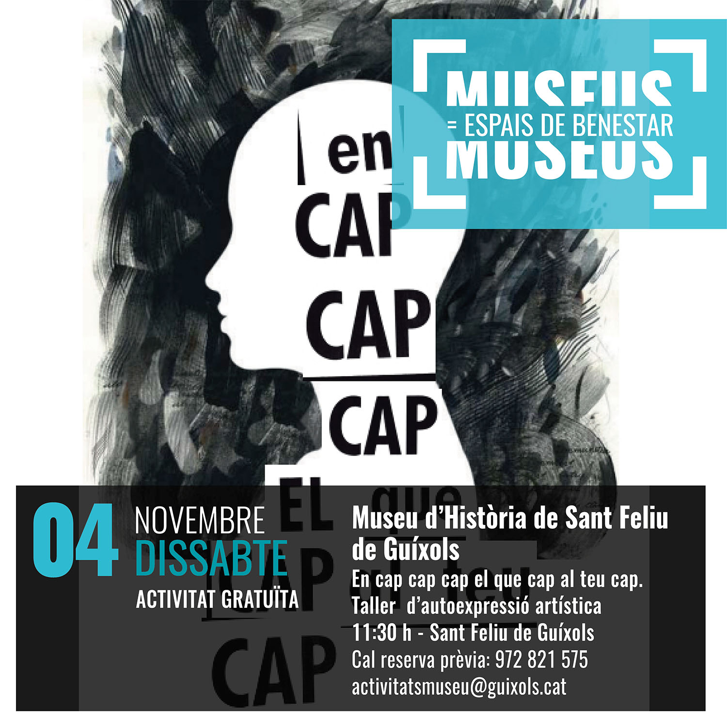 - 11.30h. En cap cap cap el que cap al teu cap. Taller d’autoexpressió artística. Museu d’Història de Sant Feliu de Guíxols.