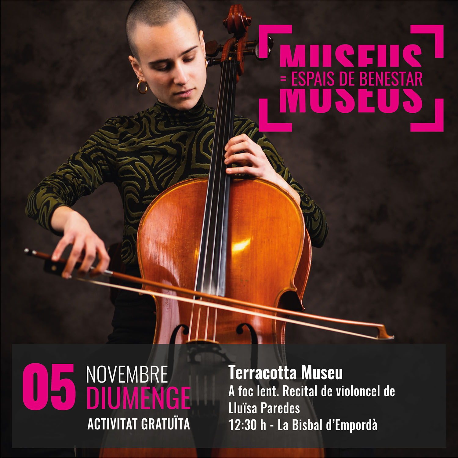 - 12.30h. A foc lent. Recital de violoncel de Lluïsa Paredes. Terracotta Museu. La Bisbal d’Empordà.