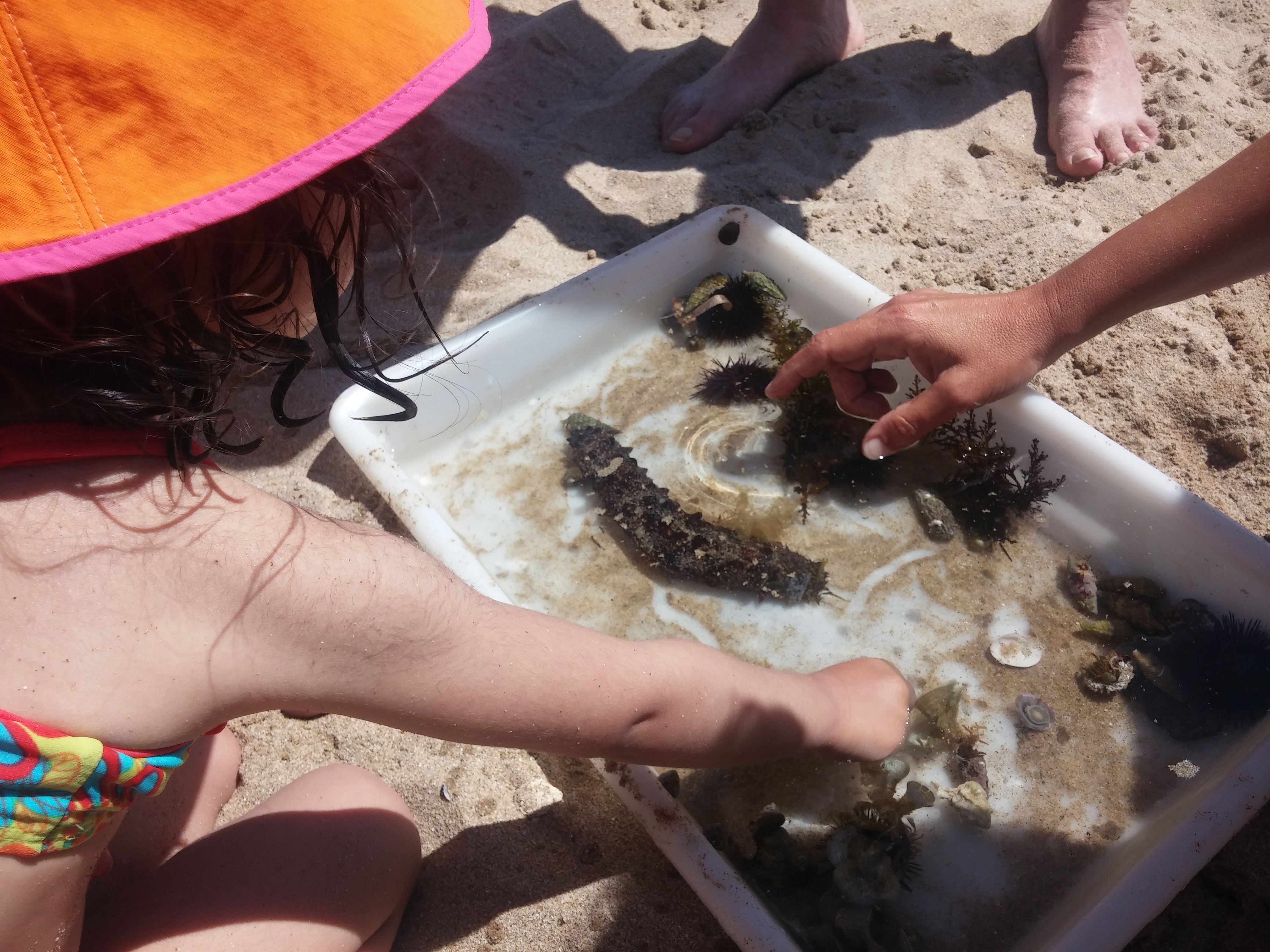 Explicació sobre el medi on treballarem durant el taller i els animals que hi viuen. Cerca d’organismes a l’aigua de la platgeta de l’Estartit i en acabar observació i manipulació de les troballes.