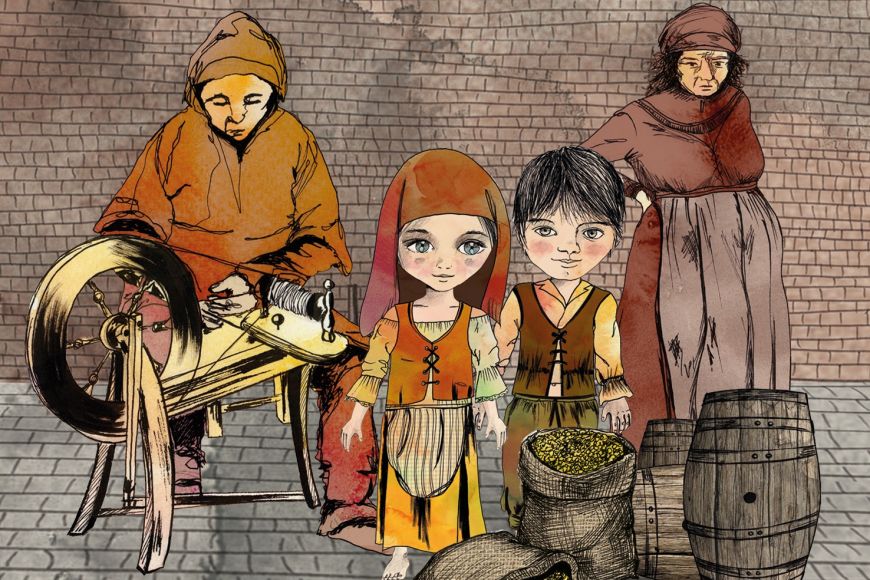 Hola! Som la Caterina i en Genís, dos germans bessons de set anys que vam viure molts anys enrere a Torroella de Montgrí. La vida cap al 1400 era molt diferent avui dia. No anàvem a l’escola com ho feu vosaltres, però des de ben petits ja ajudàvem a casa i és així com vam aprendre moltes coses.
