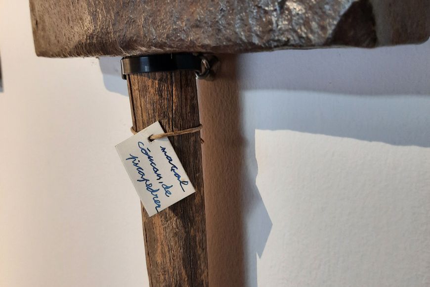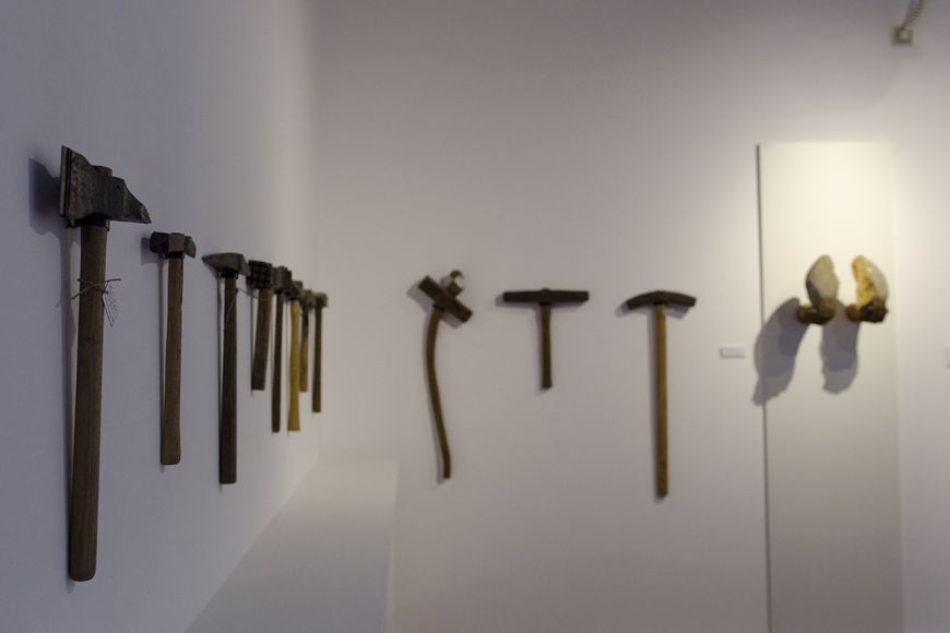 Aquesta aproximació queda cristal·litzada en l’exposició a través d’una videoinstal·lació que recrea el gest de colpejar un còdol, acompanyada d’una sèrie de peces escultòriques i d’una instal·lació conformada per un conjunt d’eines de picapedrer de la col·lecció privada d’Àngel Canyigueral. Totes elles, però, no deixen de ser millores específiques del Pic del Montgrí i, com diu Juhani Pallasmaa al llibre La mano que piensa, les eines son extensions de la mà humana que n'alteren les seves possibilitats i capacitats naturals.