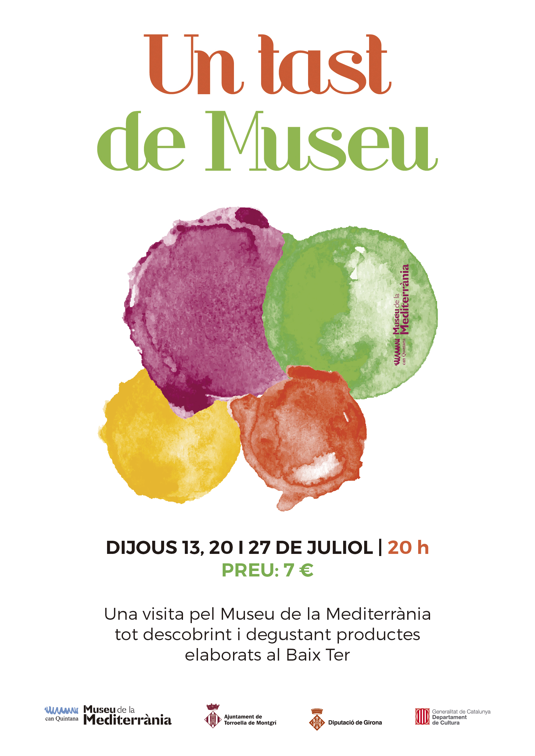 Us imagineu voltar pel Museu de la Mediterrània tot fent tastos de productes gastronòmics del Montgrí i el Baix Ter? Aquest estiu us oferim la oportunitat de fer-ho. Els dijous 13, 20 i 27 de juliol hem organitzat una visita diferent pel Museu de la Mediterrània provant sucs, olis i vins de l'àmbit del Parc Natural del Montgrí, les Illes Medes i el Baix Ter.