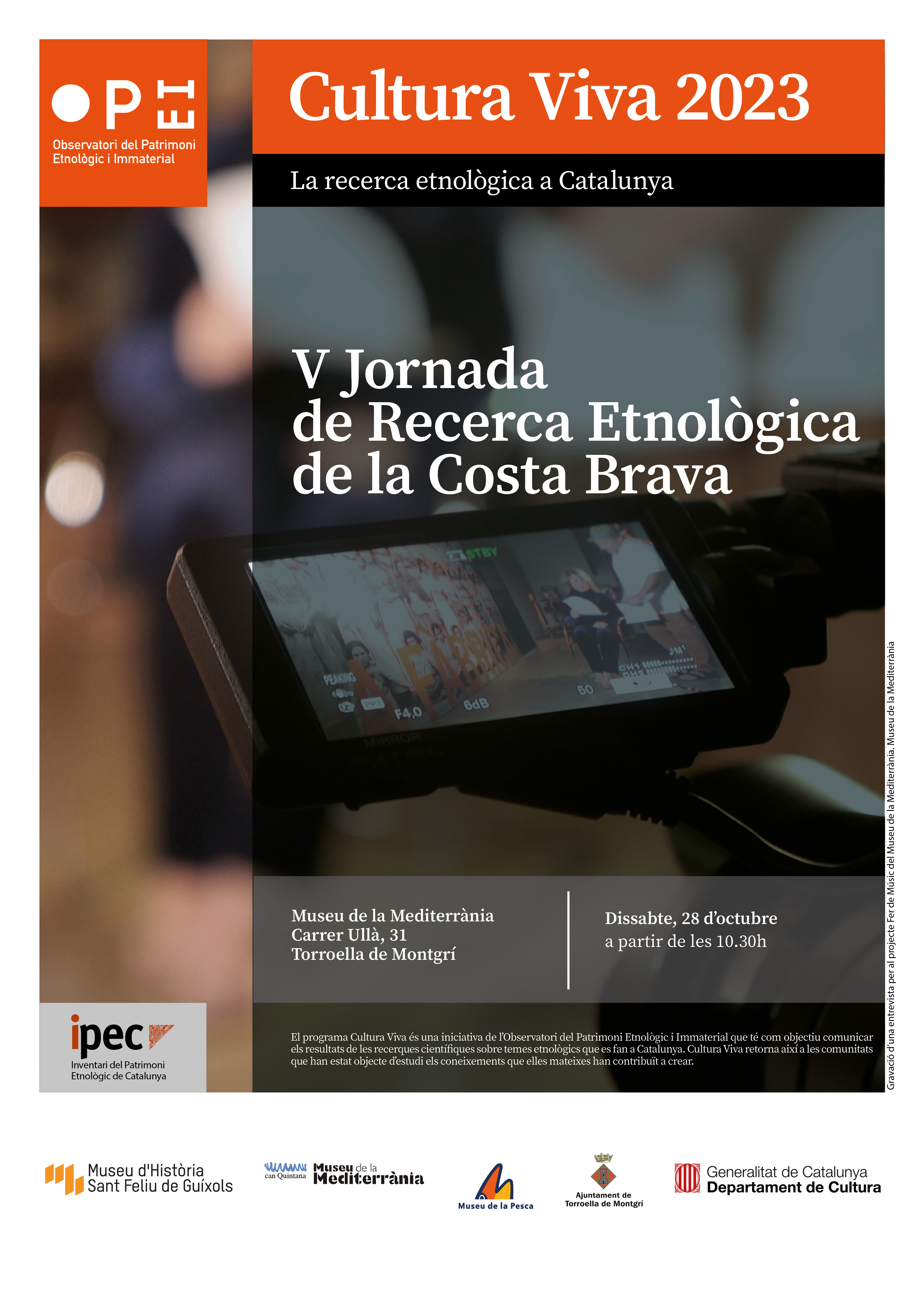El Museu de la Pesca, el Museu de la Mediterrània i el Museu d'Història de Sant Feliu de Guíxols, com a membres de l'Observatori del Patrimoni Etnològic i Immaterial de Catalunya (OPEI) organitzen la V Jornada de Recerca Etnològica de la Costa Brava, que se celebrarà el dissabte 28 d'octubre al Museu de la Mediterrània.