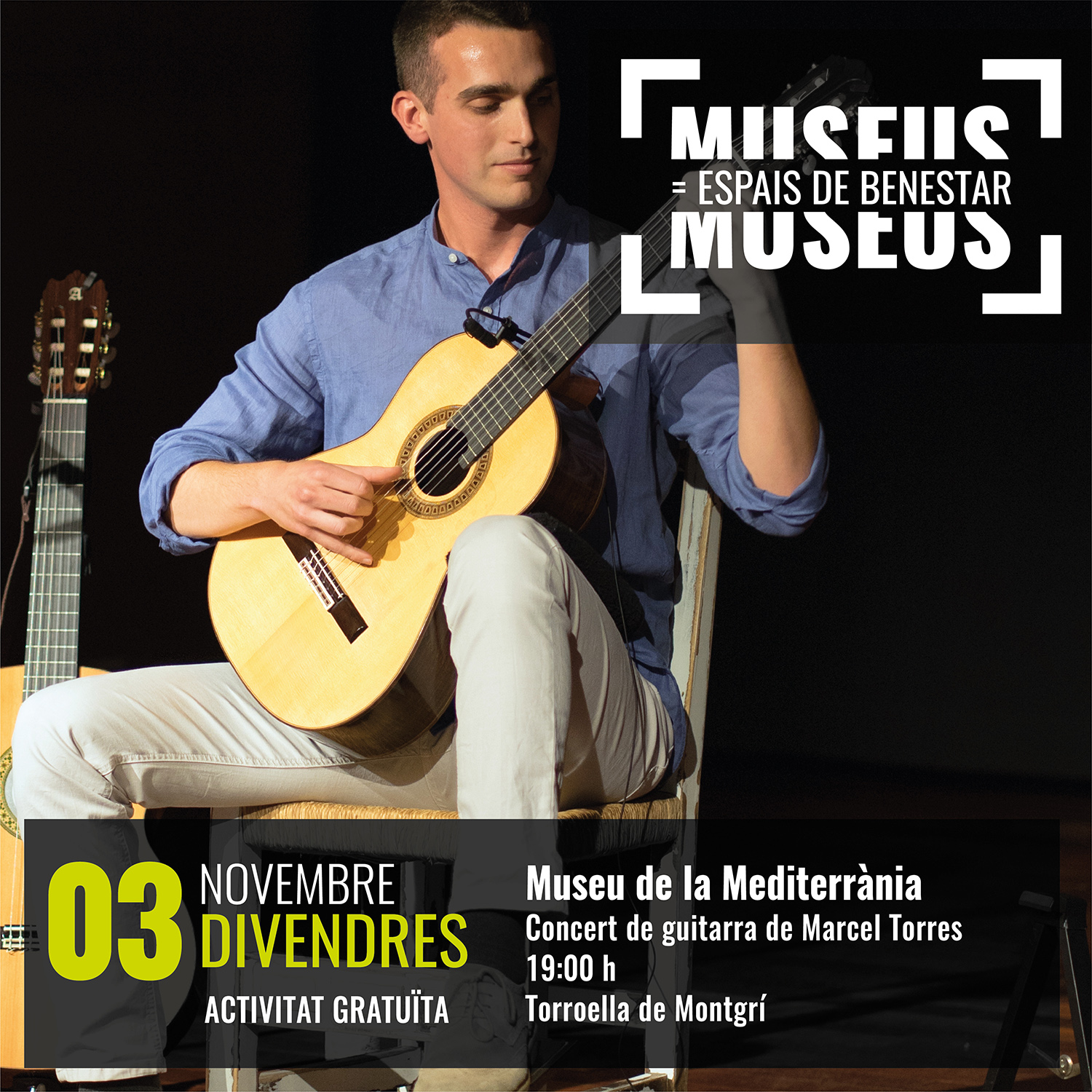 Tot seguit, a les 19 hores us oferirem un concert de guitarra de Marcel Torres. Marcel Torres és un jove talent de la guitarra nascut a Girona que s’especialitzà en la interpretació de la música clàssica i, sobretot, contemporània. Un enorme interès per tots els estils de música el porten a definir un perfil artístic eclèctic. Es nodreix dels móns del jazz, la música moderna, la música electrònica i la improvisació.