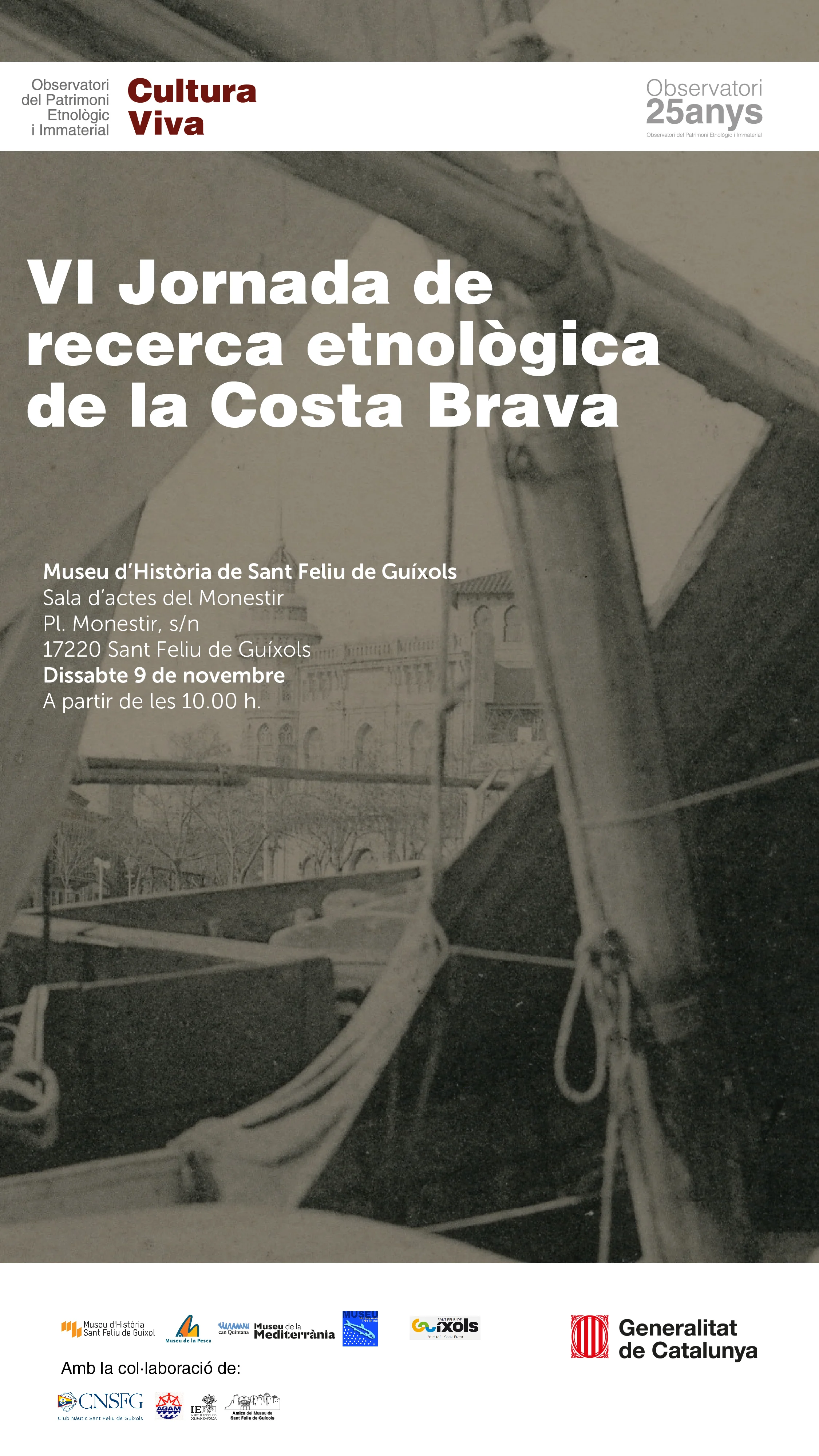 El Museu d’Història de Sant Feliu de Guíxols, el Museu de la Pesca i el Museu de la Mediterrània co-organitzen la VII Jornada de Recerca Etnològica de la Costa Brava, la qual s’inclou dins el cicle Cultura Viva. Els tres museus, com a antenes de l’Observatori del Patrimoni Etnològic i Immaterial, tenen com a objectiu comú donar visibilitat i ser espai de debat sobre les recerques recents o en curs relacionades amb l’etnologia per potenciar el coneixement de la Costa Brava.